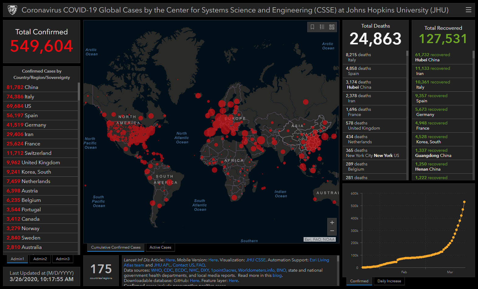 Imagen cortesía de Johns Hopkins, haz clic para acceder al mapa original
